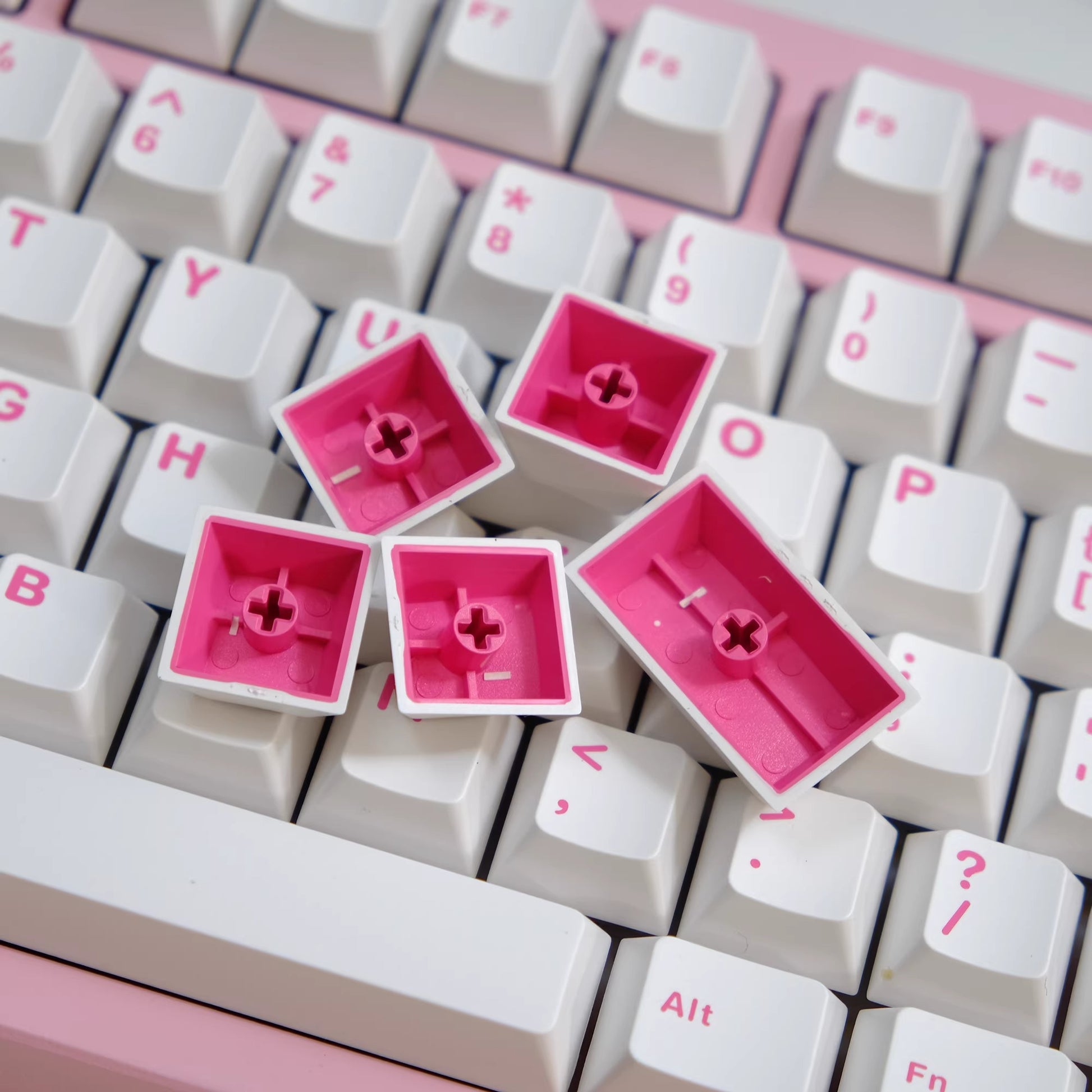 Aifei Pink on White (POW) Keycap Set, Cherry Profile, Double Shot ABS Key Cap