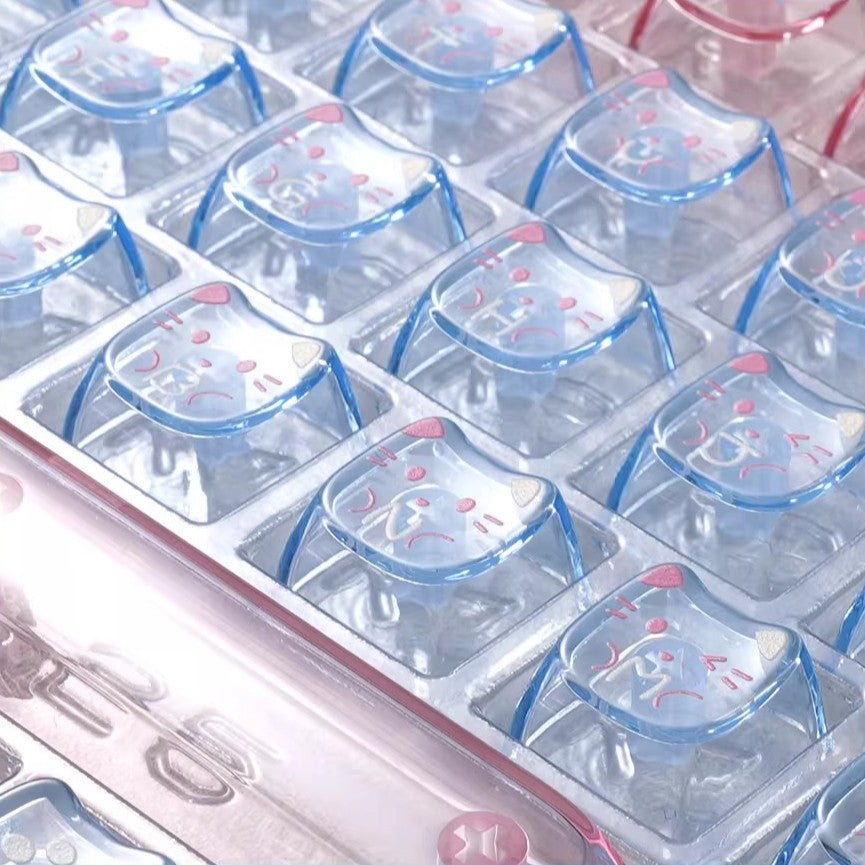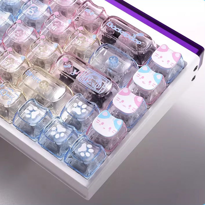 Lazy Cat Cute Transparent Keycap Set, MAO+MOA Profile, PC Transparent Key Cap