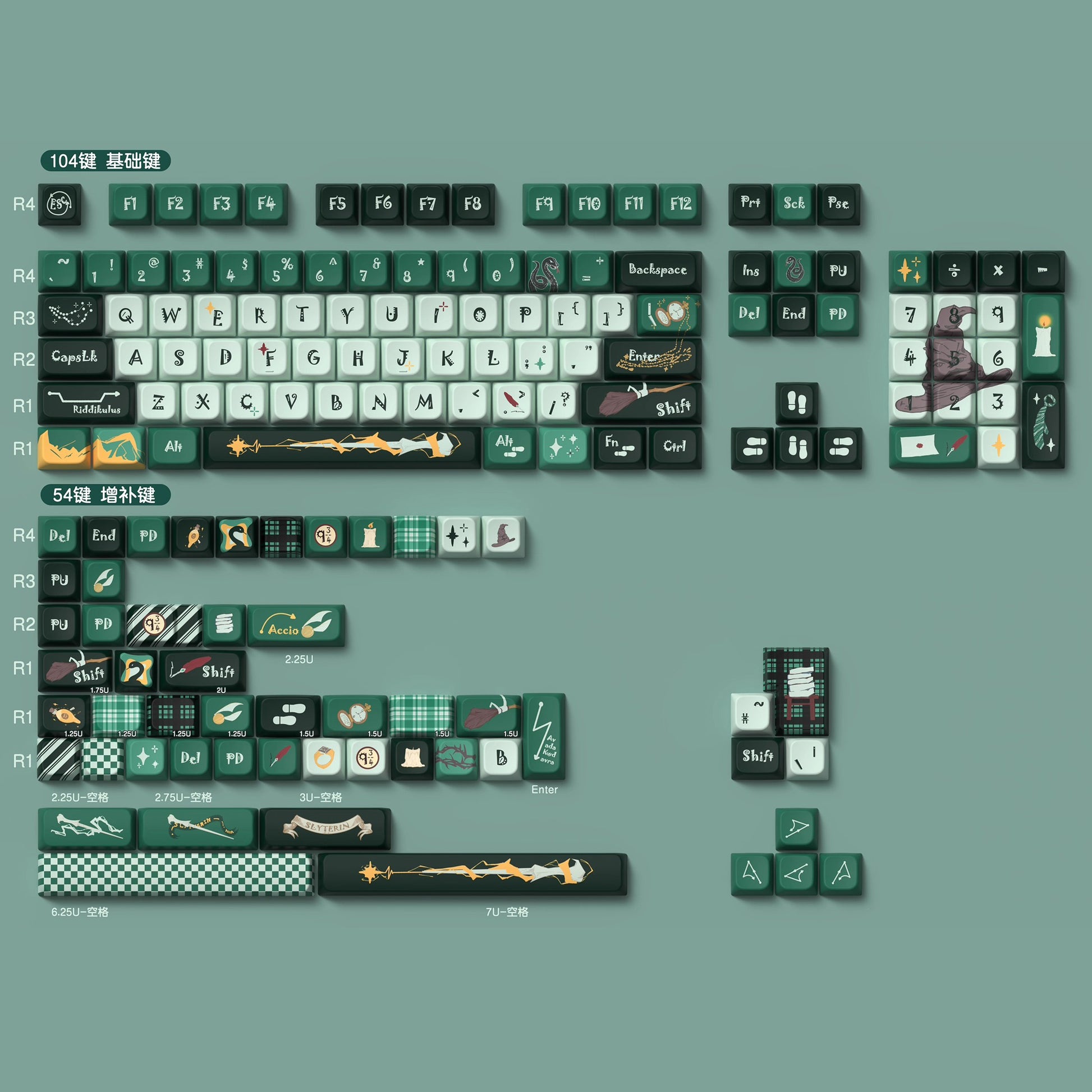 Slytherin (Green) Cute Keycap Set, MDA/Cherry Profile, PBT Dye Sub Key Cap