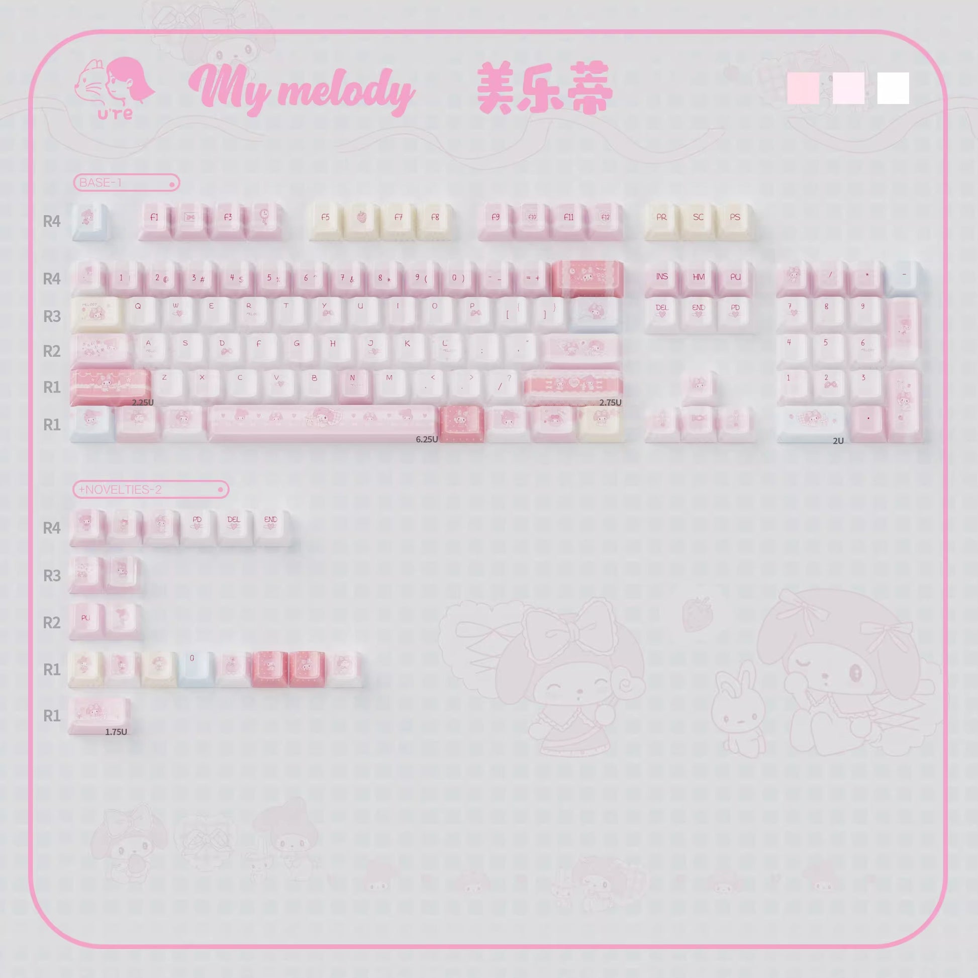 URE My Melody Cute Crystal Jelly Keycap Set, KDA Profile, Dye Sub PBT + PC
