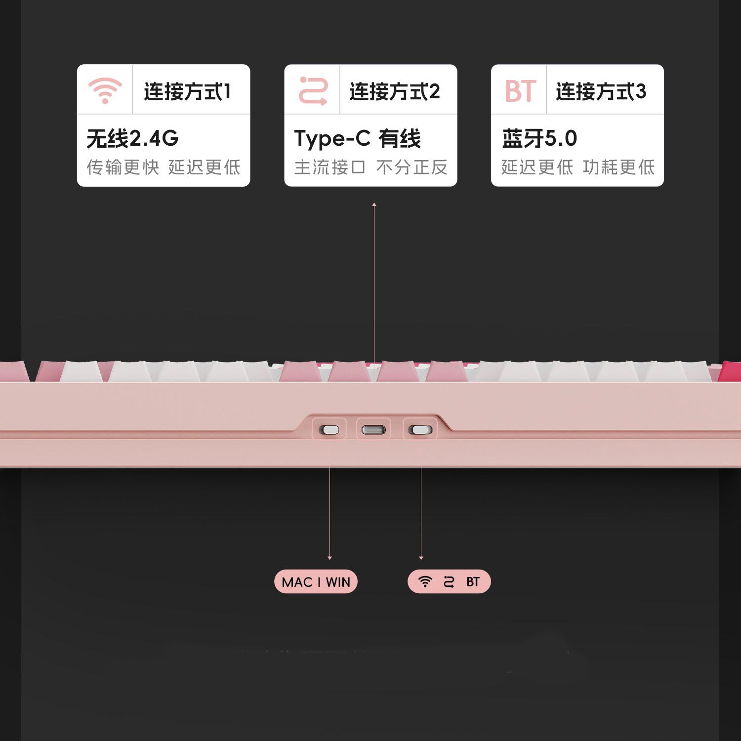 - Connectivity : (Tri-mode) USB-C / 2.4G / Bluetooth (3000/6000mAh)*