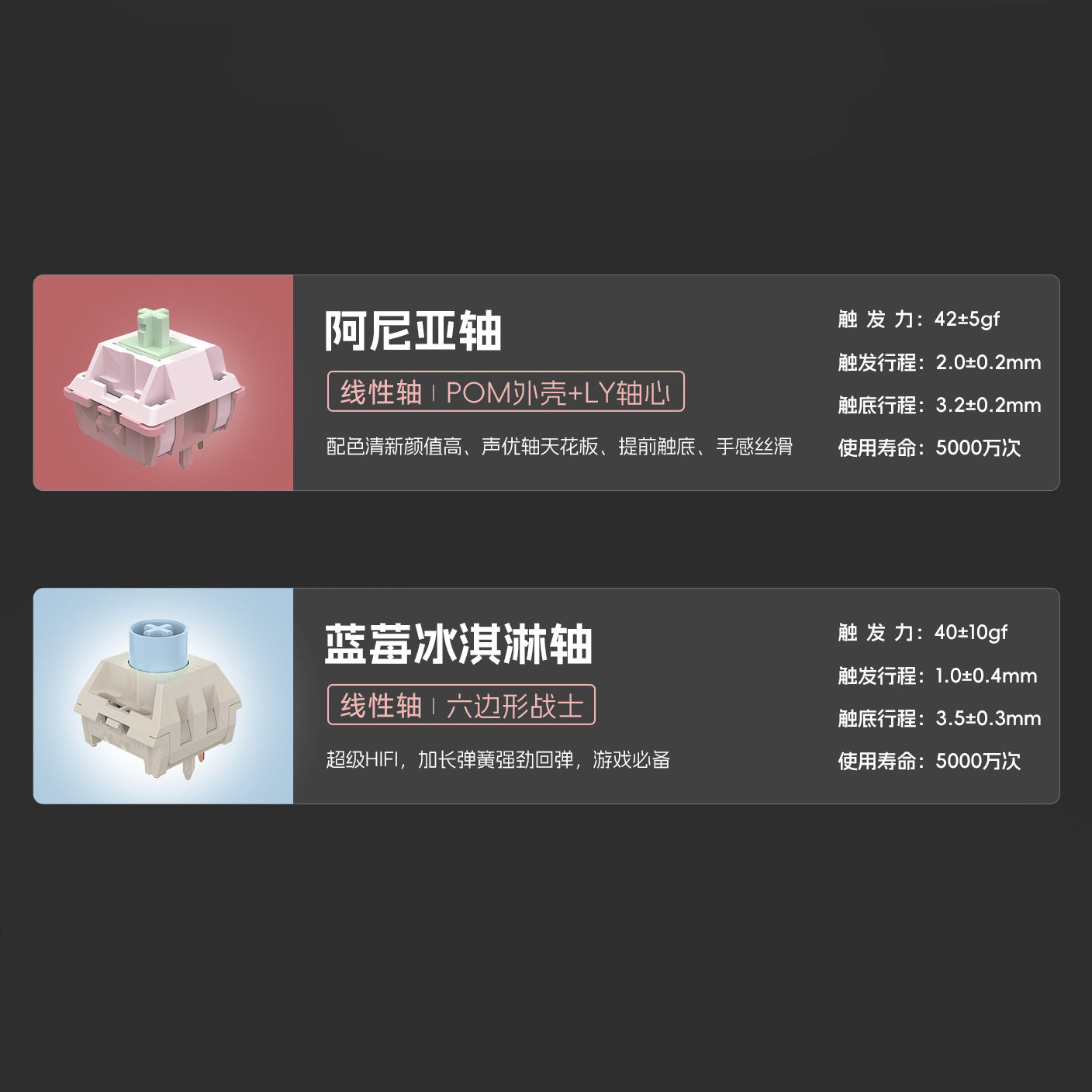 - Ice Berry : 40±10gf | 1.0/3.5±0.4mm, (Black, Silver)