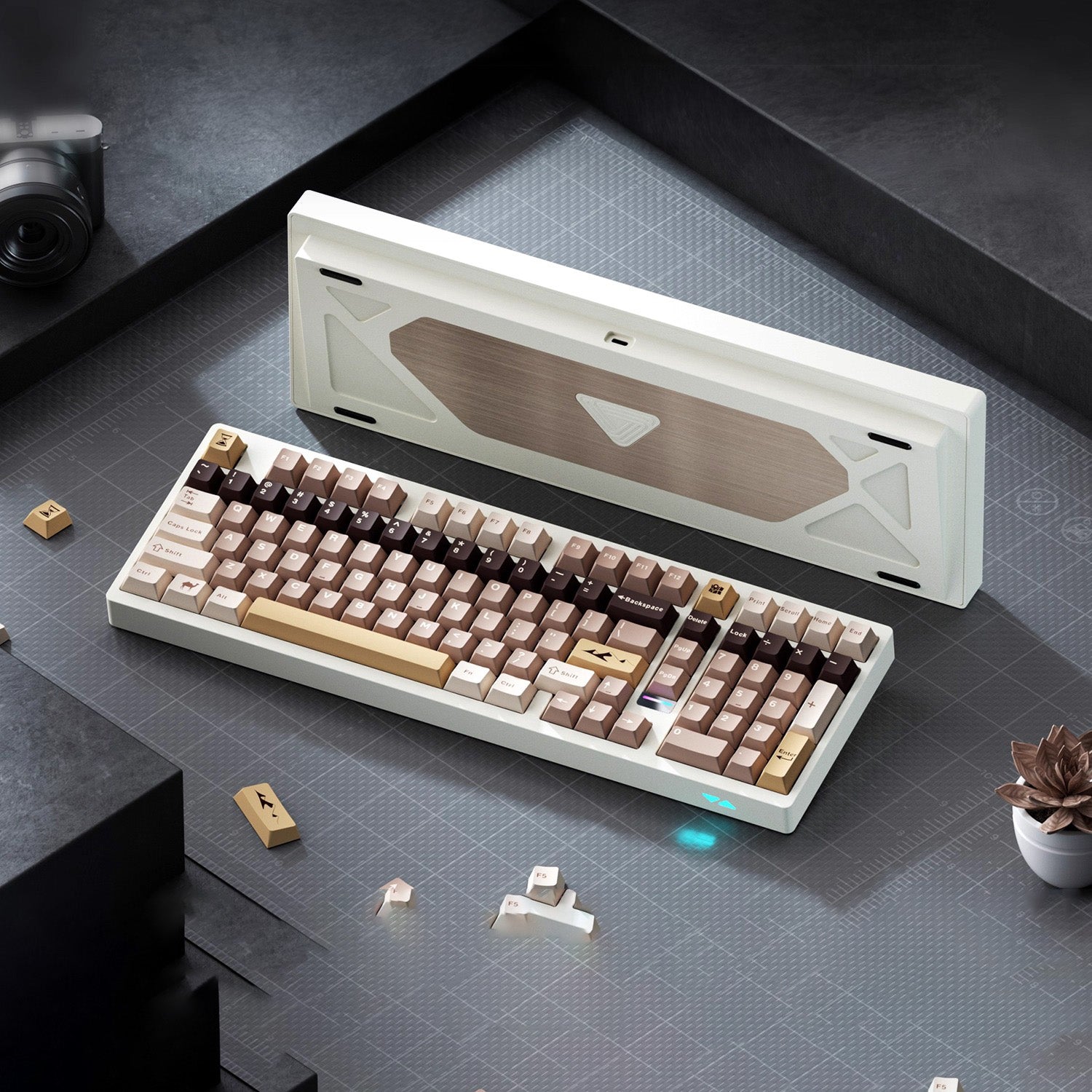 - Prebuilt : Cocoa Latte Switch and theme matching keycaps (PBT/PC)